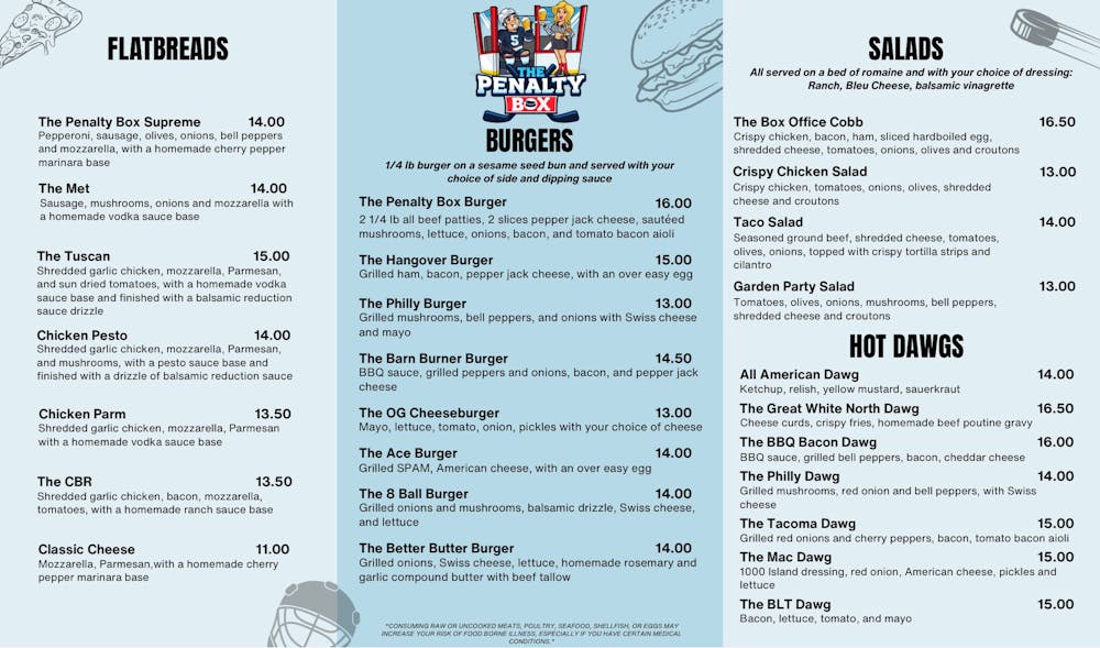 Welcome to The Penalty Box. Nestled in the heart of Lakewood, with great access off I-5, we will be offering a unique fusion of Canadian charm and thrilling sports entertainment. With a diverse array of activities, pool tables, darts, an exhilarating Chex Bubble Hockey, Golden tee and pull tabs. We are now open to minors until 9pm for a fun, family experience.